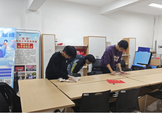 11月13日,交通运输与工程学院于9栋一站式学生社区开展劳育实践活动,学生积极响应、分工协作,用扫帚、拖把等工具全面清扫地面、桌面及角落卫生,规范办公区域文件摆放。
