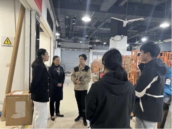 一行人参观了站点核心作业区域,详细了解学生岗位分配与实训进展,与学生亲切交流,询问适配情况与实际需求,勉励大家学以致用。同时,与站点负责人就岗位技能标准、课程优化及深化校企合作等事宜沟通。