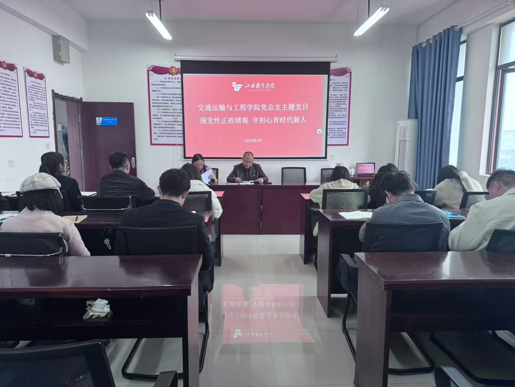 根据交通运输与工程学院树立和践行正确政绩观学习教育工作安排,3月26日,交通运输与工程学院党总支组织开展“强党性正政绩观 守初心育时代新人”主题党日活动。学院全体党员、干部参加活动。