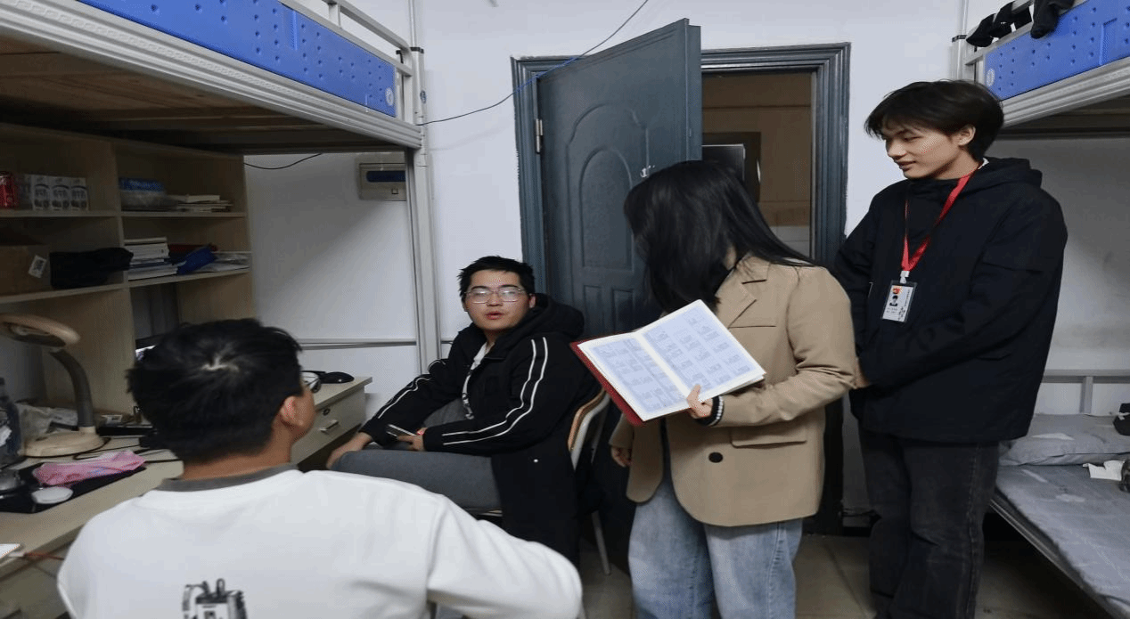 走访中,师生重点排查违规电器、用电规范等宿舍安全隐患,同步与新生亲切交流,详细了解军训适应情况、内务进度及思想动态,倾听诉求并现场协调解决实际困难,高效完成隐患排查与情况汇总。