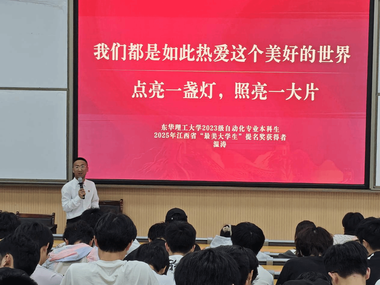4月28日,交通运输与工程学院在科技楼K4教室举办交享荟优秀学子经验分享会,特邀江西省“最美大学生”提名奖获得者温涛作分享。他从专升本逆袭、学科竞赛、学生工作及社会服务等方面分享成长历程,传授学业规划成才经验。活动发挥榜样示范作用,为学子明晰成长方向、凝聚奋进力量。