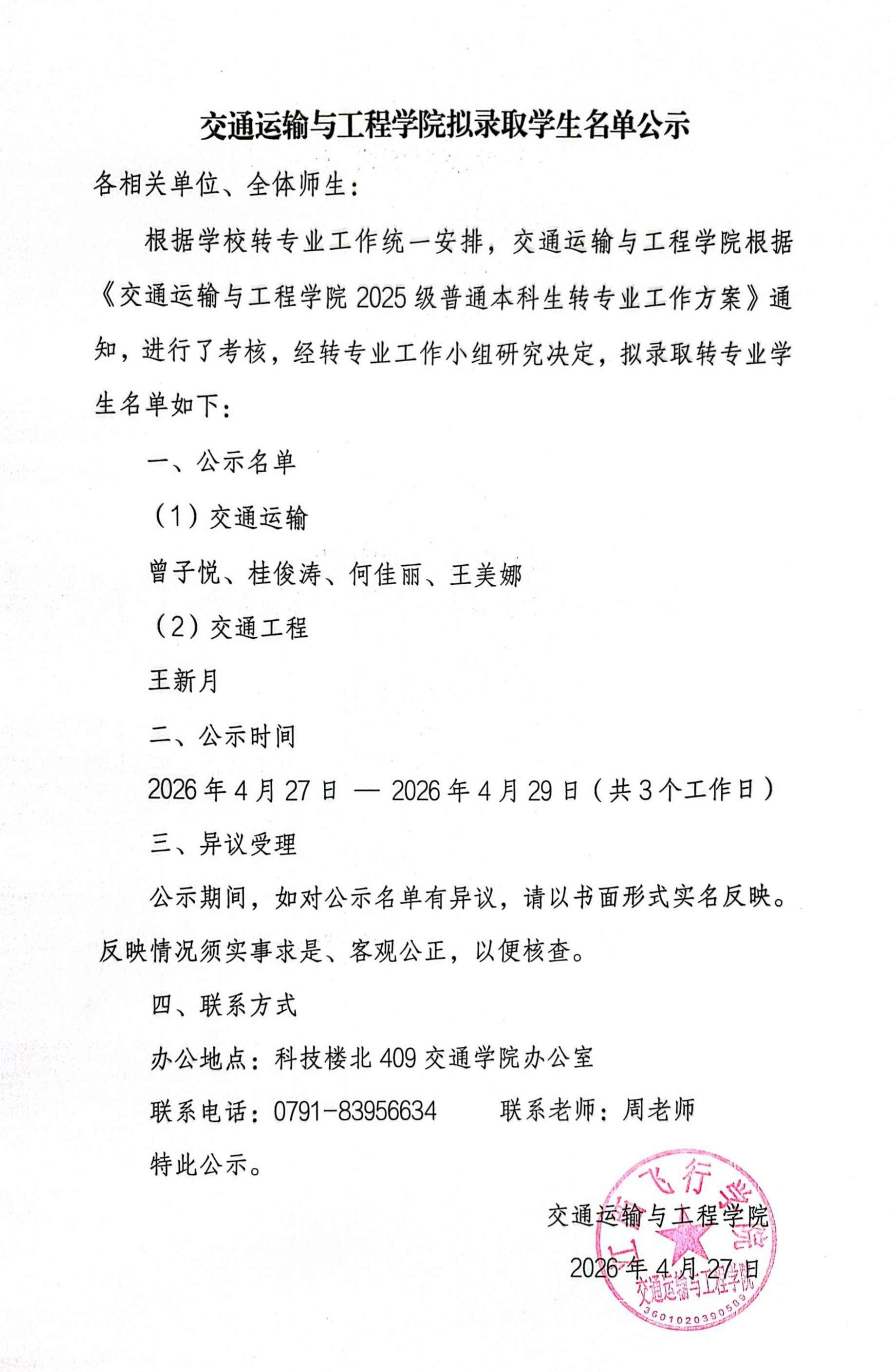 2024-2025学年交通运输与工程学院国家励志奖学金名单公示