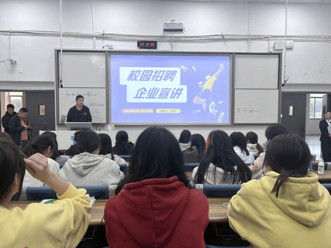 为帮助同学们拓宽就业渠道,精准对接企业岗位需求,江西千鼎互联科技有限公司于10月24日,在1-阶梯三教室开展江西千鼎互联科技有限公司招聘宣讲会。