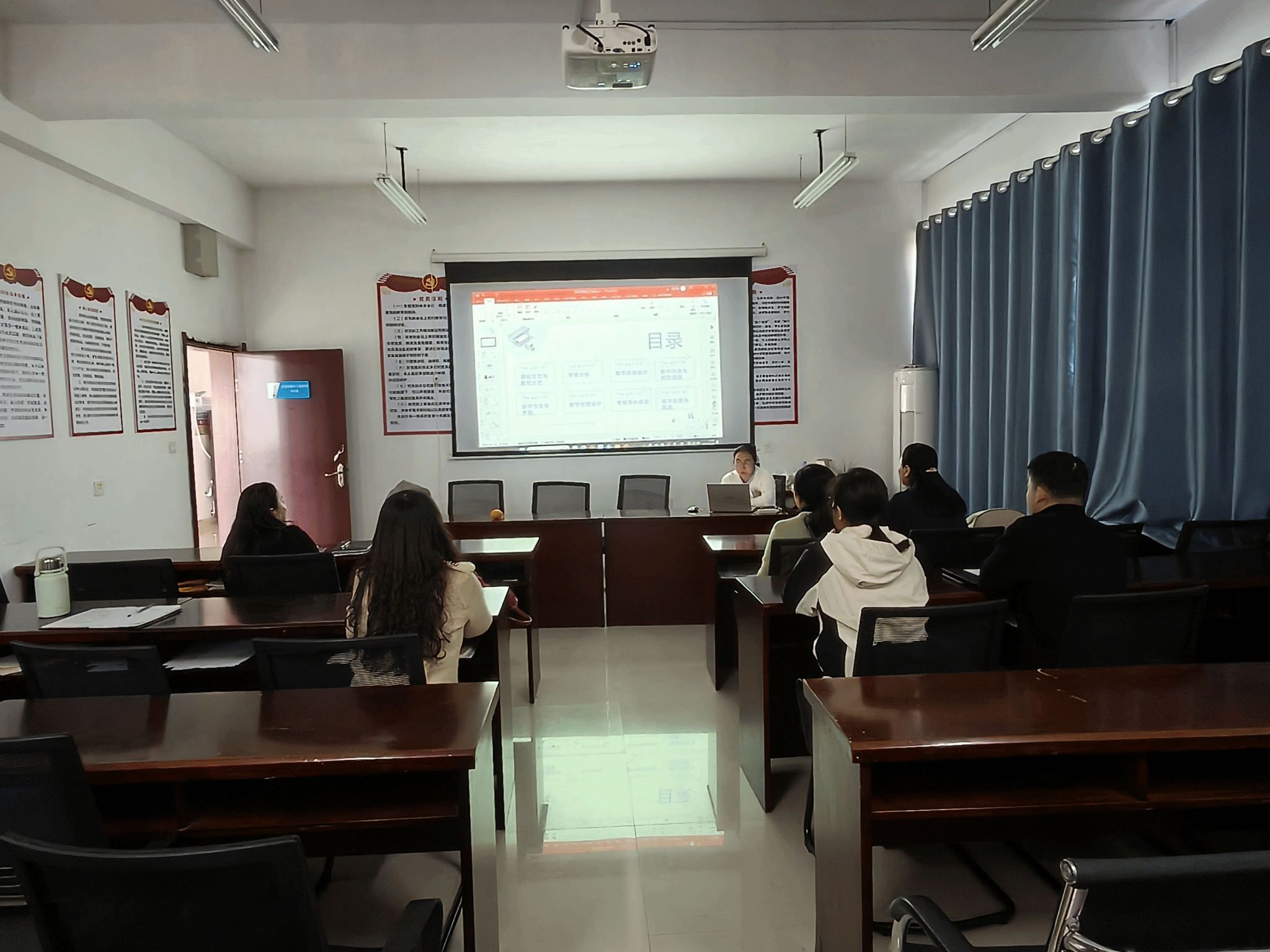 活动中,胡洁琼老师以《物流学概论》课程为核心,从课程定位与教材分析、学情分析、教学目标设计、教学内容与课时规划、教学方法与手段、教学过程设计、考核评价体系、教学反思与改进八个维度,进行了系统且深入的说课汇报。她结合物流工程专业本科学生的知识基础与学习特点,详细阐述了课程在专业培养体系中的关键地位,剖析了教材的知识架构与重难点,并围绕课程对物流工程专业人才培养的支撑作用,详细阐述了基于工学认证设计的教学内容。同时,她提出希望能与企业联动,组织学生到物流企业开展参观实训,让学生直观感受物流运作流程,将理论知识与实践深度融合,助力学生工程应用能力培养。教研室教师就教学内容优化与产教融合路径展开研讨,为课程高质量建设夯实基础。